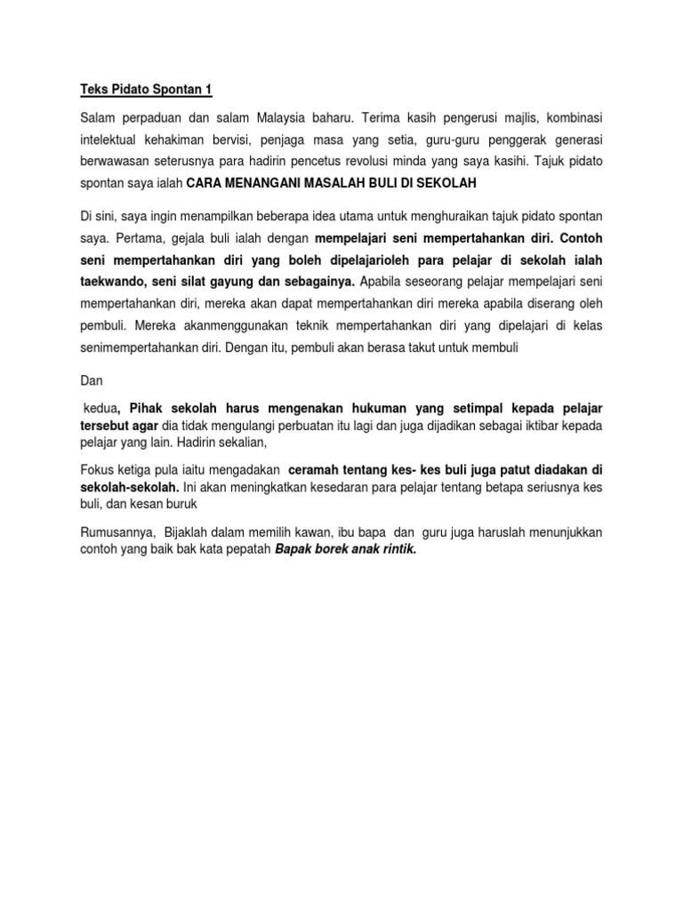 Teks Pidato Bahasa Melayu 2017 Pdf